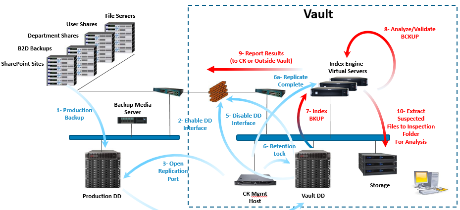 基本級 Cyber Recovery 解決方案體(tǐ)系結構由一(y♠∏ī)對(duì) Data Domain 系統和(hé) Cyber Recover≈'§y 管理(lǐ)主機(jī)組成。在此基本級配置中,運行(¥αxíng)在管理(lǐ)主機(jī)上(shàng)的(de) Cyber£× Recovery 軟件(jiàn)通(↑δ₩tōng)過啓用(yòng)或禁用(yòng<γ) CR 存儲區(qū)中 Data Domain 系統上(shàng)的(deφ☆)複制(zhì)以太網接口,來(lái)控制(zhì)從(cóng)生(shēng)産環 ∞≥♠境流向存儲區(qū)環境的(de)數(shù)據流